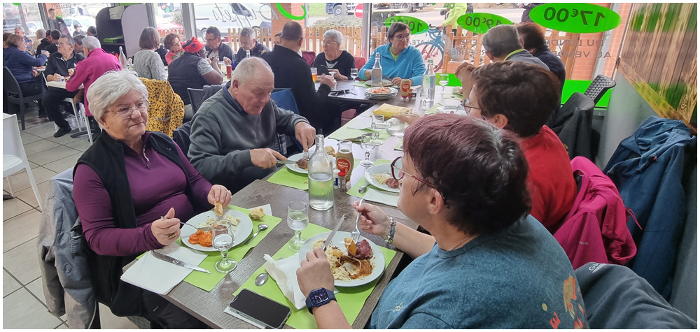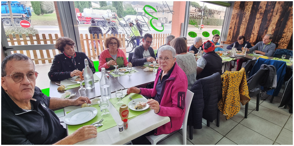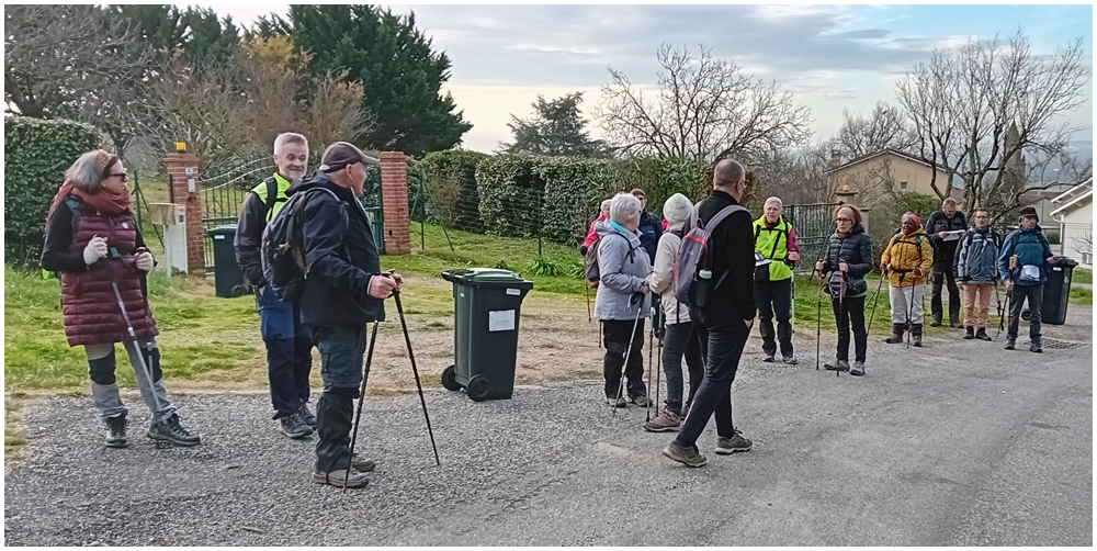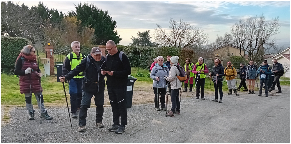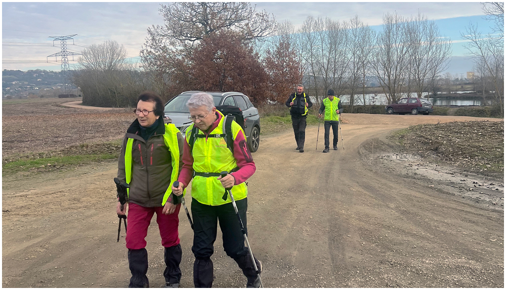 Le samedi 19 décembre 2025 en journée, direction la commune de Pompignan pour nos dernières randonnées de l’année. Celle du matin qui suivra le circuit « Par les champs et les bois de Pompignan » permettra « aux plus en forme » de suivre Nasser sur la totalité du parcours. Un deuxième groupe, emmené par Claude, empruntera une variante réduisant ainsi de quelques kilomètres ce circuit au dénivelé parfois important. Après un bon repas au restaurant local « Les 3B », quelques un(e)s prendront le départ pour une courte marche sur le circuit « Du canal latéral à la Garonne ».