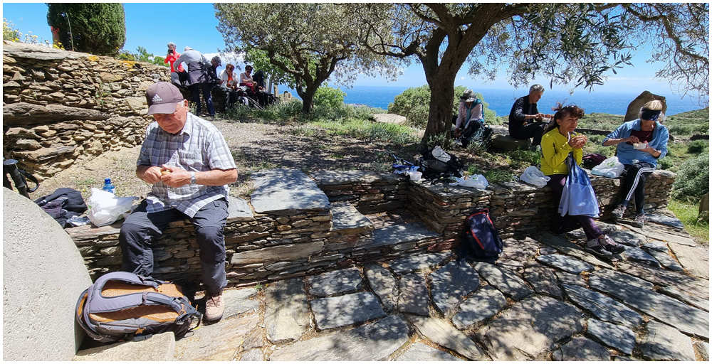 Petit déjeuner terminé, départ pour une randonnée dans la Serra de Rodes dernier contrefort des Pyrénées et la visite du monastère de San Père de Rodes. Joyau de l’art roman, cet édifice religieux s’élève majestueusement au milieu de la montagne et domine toute la péninsule du Cap de Creus. A l’issue de la visite, les plus courageux et courageuses continueront la randonnée en prenant encore plus de hauteur avec en point de mire le château de Verdera et une magnifique vue sur la baie de Rosas. (Crédit photos: Alain, Eugène et Marie-Jacqueline)
