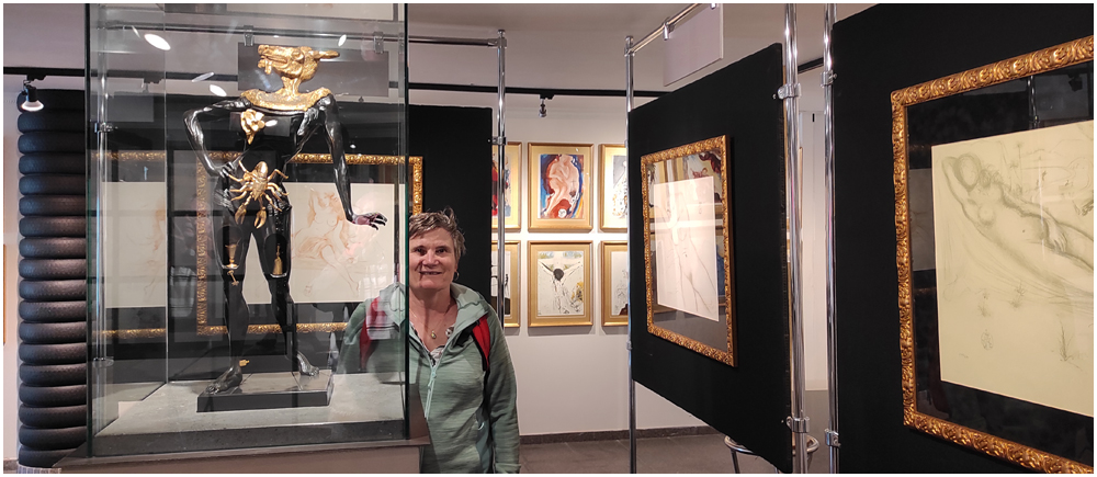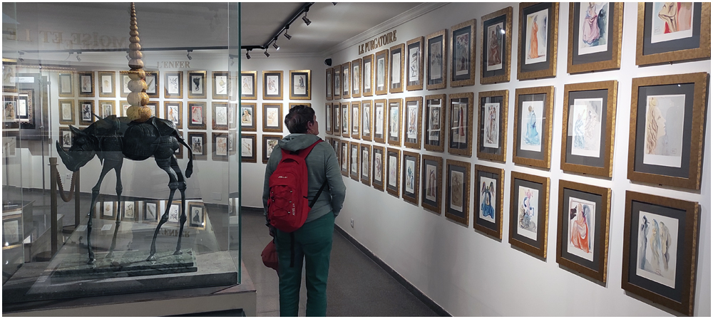 Située dans la crique de Portligat, il est impossible, avec sa couleur d’un blanc éclatant, de manquer la Maison Musée Salvador DALI. Après y avoir passé de longs mois durant son enfance et son adolescence, Salvador DALI y fit construire sa maison dès les années 1930. Pour ce faire, il acheta une petite cabane de pêcheurs qu’il transforma en « véritable structure biologique » d’après ses termes. « Je ne suis chez moi qu’en ce lieu. Ailleurs, je campe », déclarait également DALI. Elle constitua son unique résidence stable, partagée avec son épouse Gala jusqu’en 1982. Composée finalement de trois maisons de pêcheurs adjacentes achetées et rénovées, cette structure labyrinthique et son jardin se visitent en empruntant une succession d’espaces dans lesquels on entre et on sort par d’étroits corridors et de petits dénivelés. La fin de cette surprenante visite laissera à chacun et chacune le choix de penser quels messages Salvador DALI entendait délivrer aux travers de ses œuvres parfois provocatrices. Peut-être qu’une de ses citations pourra finalement nous y aider: « Je n’aime lire que ce que je ne comprends pas. Ne comprenant pas, je peux imaginer des multiples interprétations« . (Crédit photos: Alain, Eugène & Marie-Jacqueline)