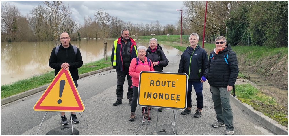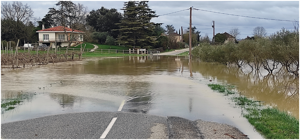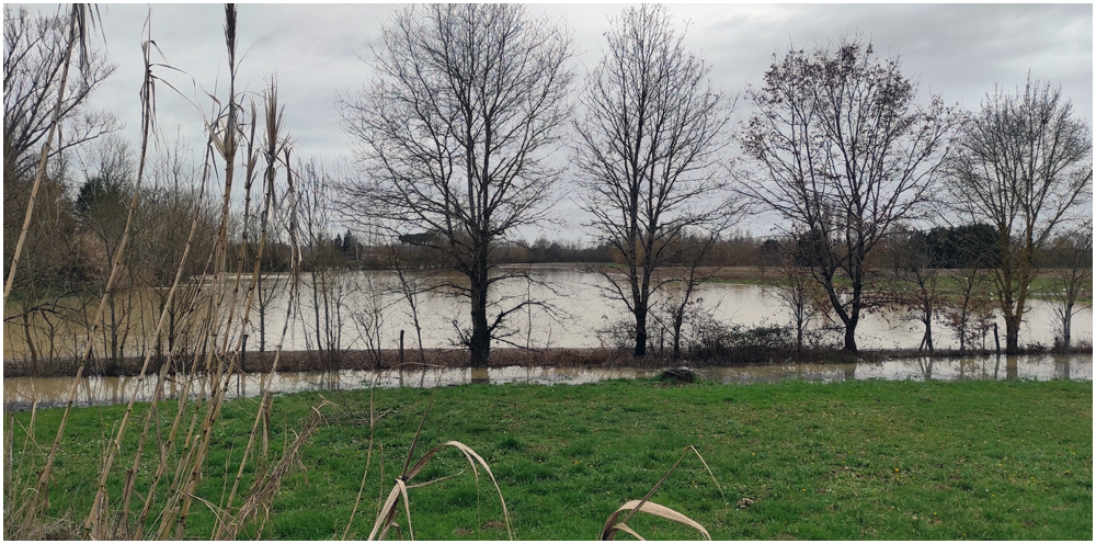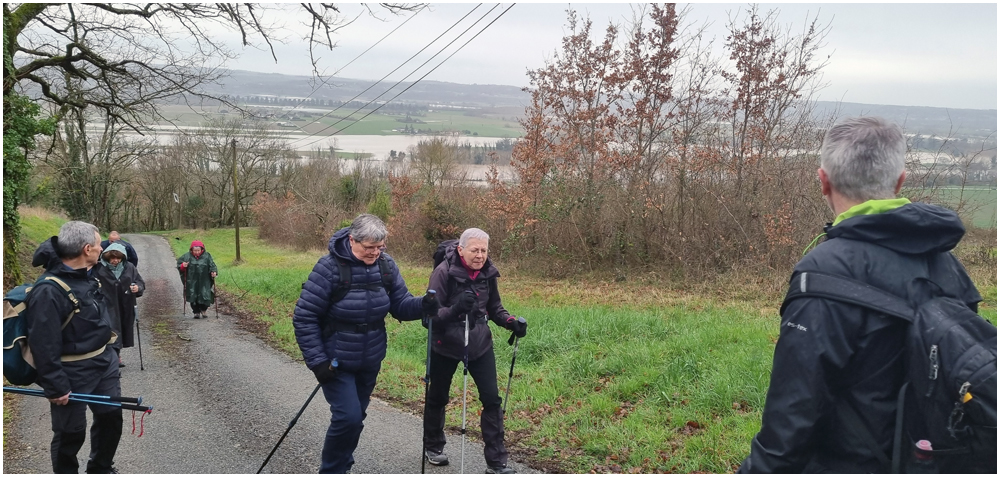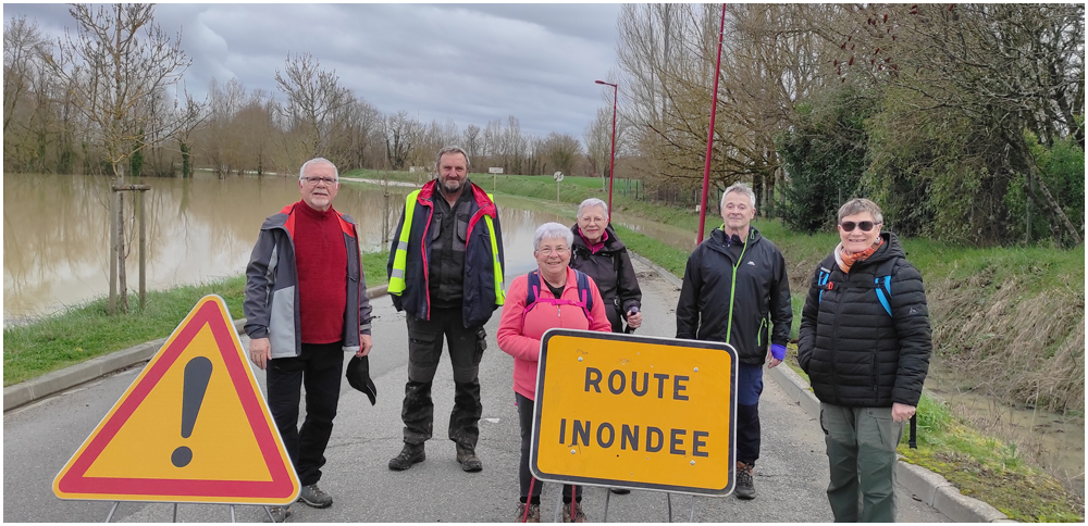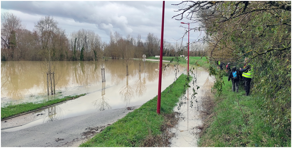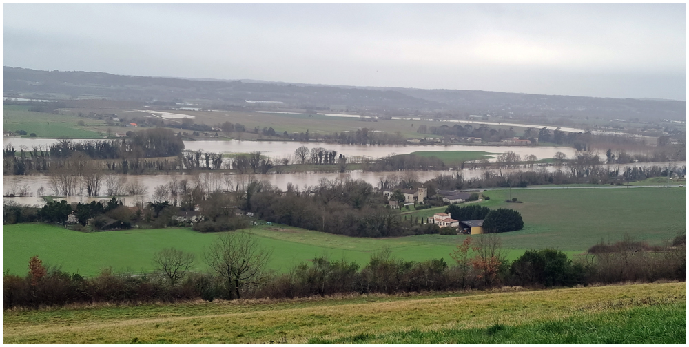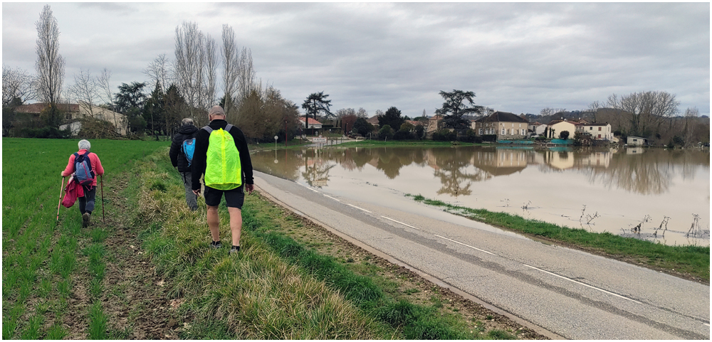 Rejoints par de nombreux adhérents pour un bon repas au restaurant « La Table en Brulhois » dans le petit village de Saint-Sixte, nous y apprendrons que ce nom – Brulhois – fait référence à un vin produit dans trois départements : le Lot-et-Garonne, le Tarn-et-Garonne et une petite partie du Gers. Peut-être à découvrir lors d’une prochaine auberge espagnole ? Et à consommer avec modération bien sûr… Mais pour l’heure, c’est le départ, pour quelques un(e)s, pour une petite randonnée dans les environs de ce village. La vue de prairies submergées par une eau boueuse et de routes inondées rythmeront cette balade. Si ajouteront arbres déracinés ou coupés en deux sous la force du vent et absence d’électricité depuis quelques jours ainsi quand témoigneront quelque habitants rencontrés et les nombreux groupes électrogènes entendus tout au long du parcours. (Crédit photos : Alain)