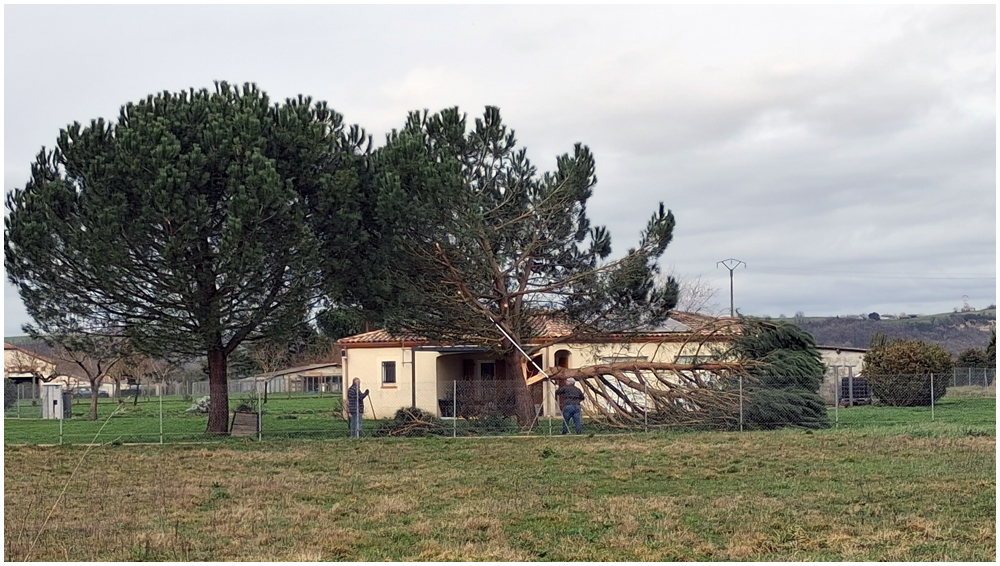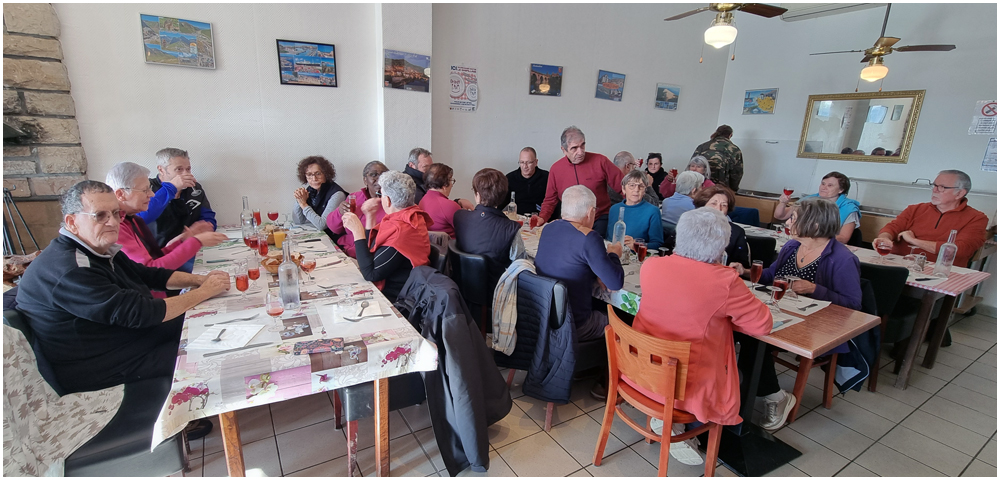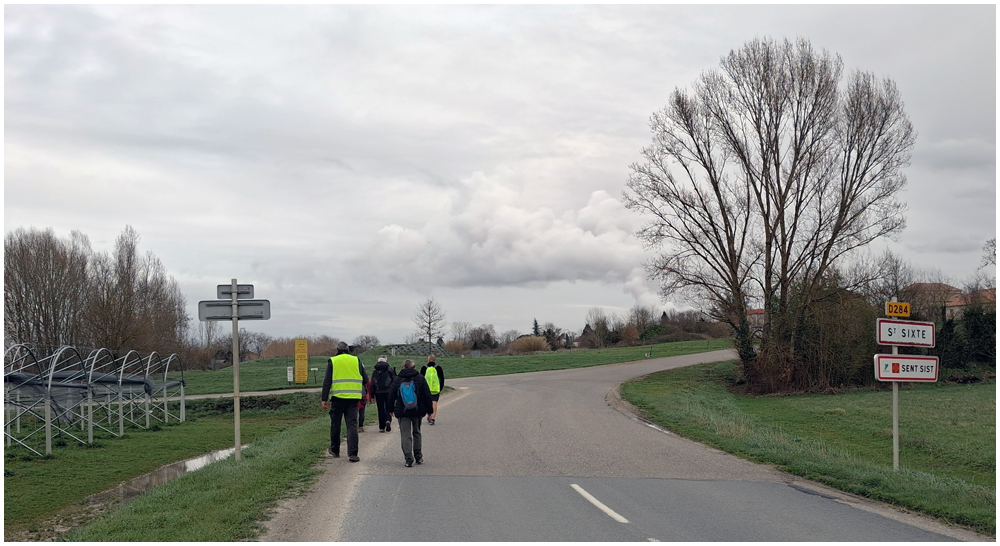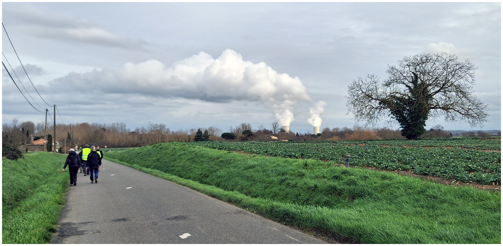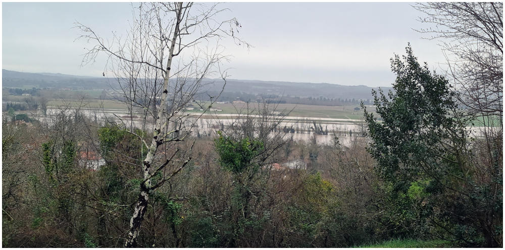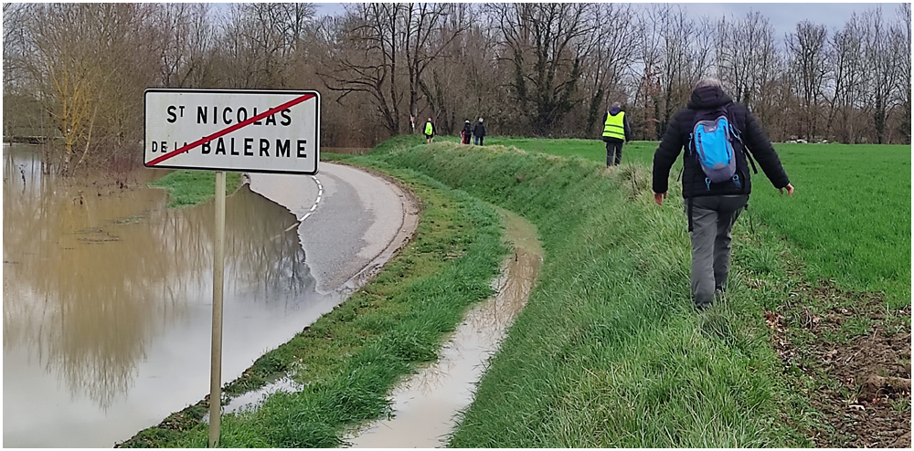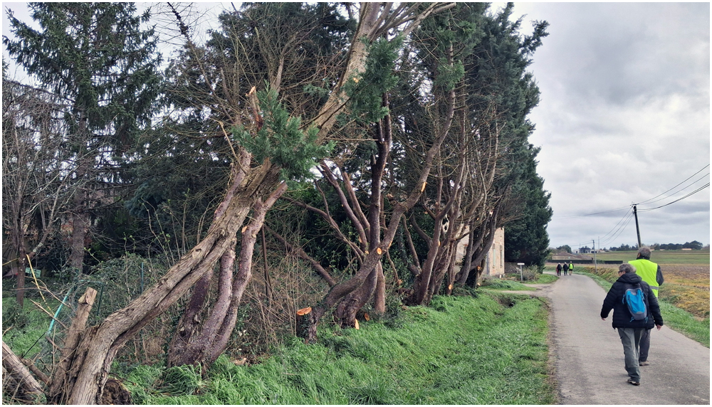 Rejoints par de nombreux adhérents pour un bon repas au restaurant « La Table en Brulhois » dans le petit village de Saint-Sixte, nous y apprendrons que ce nom – Brulhois – fait référence à un vin produit dans trois départements : le Lot-et-Garonne, le Tarn-et-Garonne et une petite partie du Gers. Peut-être à découvrir lors d’une prochaine auberge espagnole ? Et à consommer avec modération bien sûr… Mais pour l’heure, c’est le départ, pour quelques un(e)s, pour une petite randonnée dans les environs de ce village. La vue de prairies submergées par une eau boueuse et de routes inondées rythmeront cette balade. Si ajouteront arbres déracinés ou coupés en deux sous la force du vent et absence d’électricité depuis quelques jours ainsi quand témoigneront quelque habitants rencontrés et les nombreux groupes électrogènes entendus tout au long du parcours. (Crédit photos : Alain)