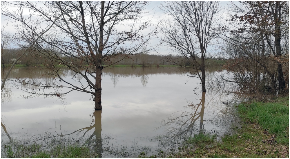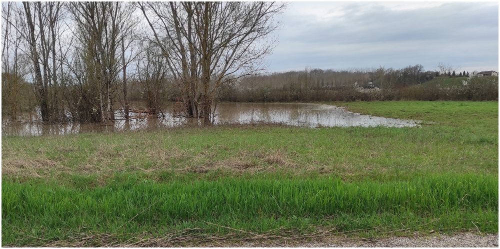 Le vendredi 13 février 2026, direction le Lot-et-Garonne et le village de Saint-Jean-de-Thurac pour une journée randonnée sous la conduite de Nasser. Si la météo des jours précédents aura réduit le nombre de participants, il faut admettre que la pluie incessante et un vent particulièrement violent n’encourageaient pas à la balade. Et pourtant, en ce vendredi 13, l’une et l’autre étaient aux abonnés absents permettant aux présents de s’élancer sur le circuit intitulé « Saint-Jean-de-Thurac, du canal aux coteaux de Serres » à la rencontre d’un sol particulièrement boueux par endroit mais offrant sur les hauteurs une vue sur l’étendue des inondations et les dégâts occasionnés par le débordement de la Garonne et les ruisseaux environnants. (Crédit photos : Eugène)